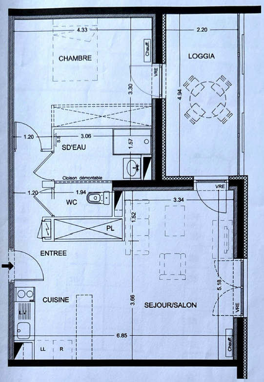 Appartement de type T2 d'une surface d'environ 55 m² (55,64 m² de surface Loi Carrez) composé d'une entrée donnant accès à un salon / séjour avec cuisine équipée américaine, d'un dégagement, d'une chambre, d'une salle d'eau, d'un WC séparé et d'une loggia avec une place de stationnement en sous-sol.